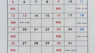 スケジュール 10月 診療時間 お知らせ 上記は10月の日程です。 ご不便とご迷惑をおかけしますが、 7月より木曜日は休診になります。 土曜日、9:30~16:30 祝日は、9:30~15:00までの受付になります。 尚上記休診日と診療時間外は、電話・LINEの返... 2025.09.29 スケジュール
